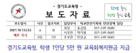경기도교육청 학생 1인당 교육회복지원금 5만원씩 지급 뉴스프리존